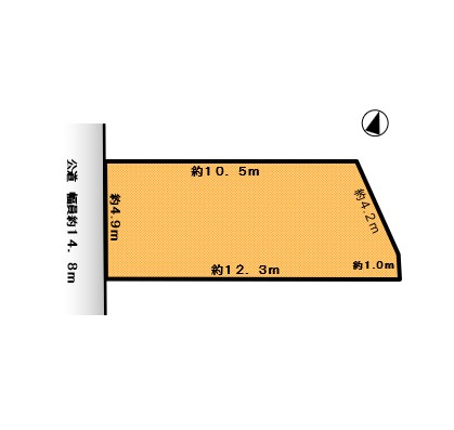 | 接道 | 南西側 公道 幅員約14.8mに約4.9m接道 | ||